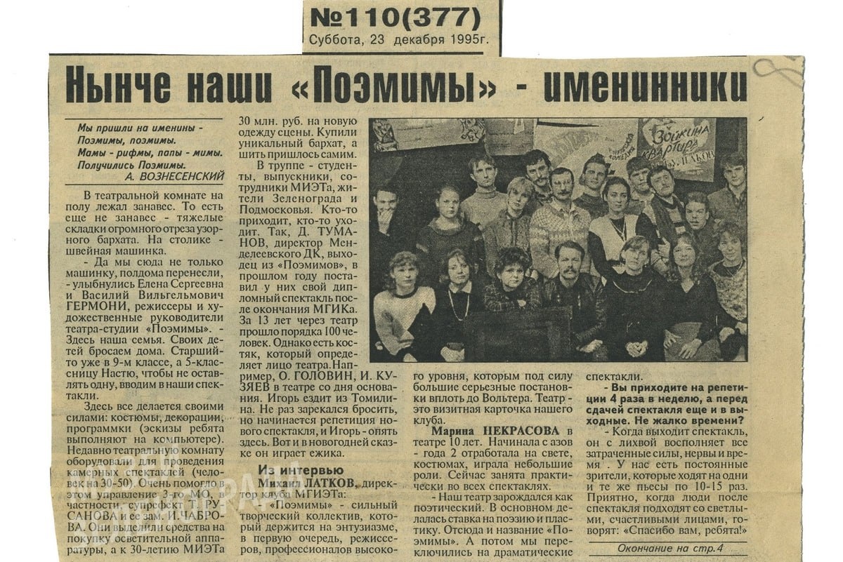 ». Откуда у театра такое название, долго ли был путь к признанию и как его основание связано с юбилеем СССР, читайте в архивной исторической справке Музея Зеленограда подписаться / обсудить в чате