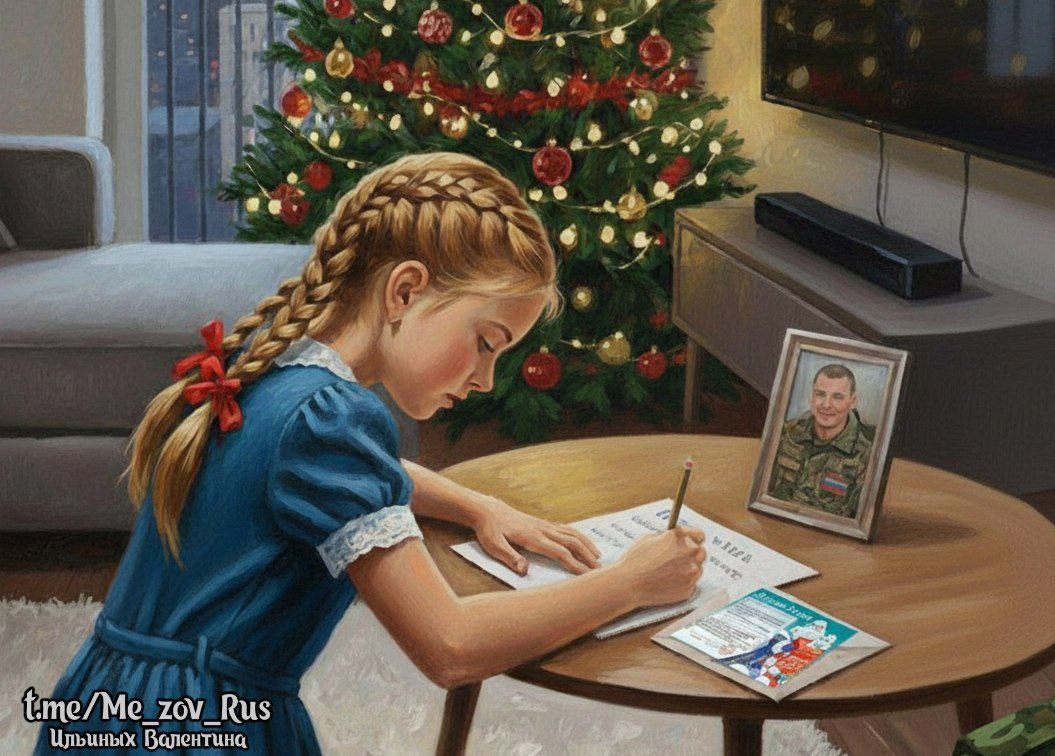 Мне говорят, что только о любви, А ты про Новый год, нам напиши, Чудеса случаются, ты позови. 🎄 Во Вселенную желание отпусти. Подумала немного, согласилась я. Пусть будет стих от детского лица. Девчушка ждёт любимого отца.❤️ И верит нежным сердцем в чудеса. Тебе, я, дедушка, пишу своё письмо. Волшебник ты, известно нам давно. Я не хочу конфет и куклы для себя. Ты возврати домой любимого отца. Я подросла за эти месяцы разлуки. Сама я глажу свои платья и юбки. На кухне помощник у мамы всегда. Вкусняшки сварю я для брата сама. Косички свои расплету легко я. Хвостики смешные делал он тогда. Включу фонарик, чтобы засыпать. И приснится папа рядышком опять. Вот мы на ледянке катимся с горы. И смеёмся громко, мама, посмотри! Снеговик с ведёрком встанет у окна. И собачка рядом будет снежная. ❄️ Знаю, мама тоже очень папу ждёт. Она свои слезинки украдкой утрёт. Прошепчет молитву у иконы вновь. Это ведь, дедушка, и есть любовь.. Вот уже и праздник у моей страны. Попроси у главного папу от