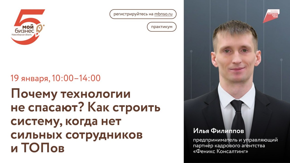 😎 Как это взаимосвязано говорим 19 января в центре «Мой бизнес» Напоминаем, практикум для вас, если вы: — 80% времени тратите на «ручное управление» и контроль — внедряли CRM и скрипты, но команда ими не пользуется — устали от бесконечных собеседований с неподходящими людьми — хотите, чтобы команда приносила результат, а не головную боль Когда: 19 января, 10:00–14:00 Где: центр «Мой бизнес» (Сибревкома 9) Вход по уникальному QR-коду, отправим накануне в смс/на почту, для участия нужна регистрация на сайте ✈️ @mbnso господдержка бизнеса ✅Мы онлайн: ВКонтакте, сайт, MAX горячая линия: 8 800 600 34 07 #длявсех