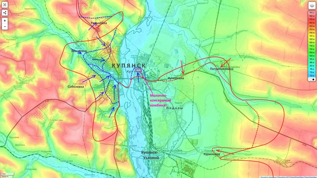 Противник сумел захватить территорию молочно-консервного комбината, что сделало положение российских подразделений на правом берегу реки Оскол критическим, информирует Юрий Подоляка в своем телеграм-канале. Этот район был последним каналом для обеспечения логистики частей на западном берегу реки. После потери комбината возможность снабжения оказалась практически полностью закрыта.