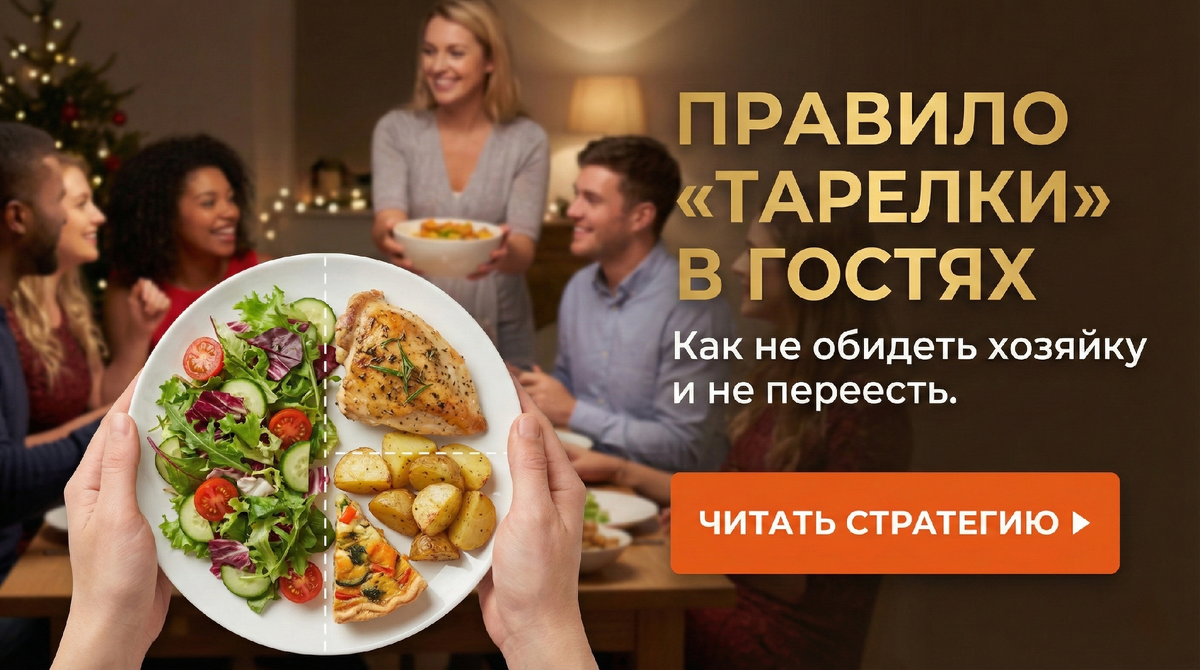 В итоге вы сдаетесь, съедаете тройную порцию майонезного салата, а потом страдаете от тяжести и чувства вины. Как выйти из этой битвы победителем? Вам не нужно громко заявлять: «Я худею!». Вам нужно использовать визуальную маскировку. Я научу вас «Правилу Тарелки», которое успокоит хозяйку и спасет вашу талию. Ваша главная задача — сделать так, чтобы ваша тарелка всегда выглядела полной. Пустая тарелка — это сигнал для хозяйки: «Срочно положи сюда еды!». Мысленно разделите тарелку на три сектора: Половину тарелки сразу же завалите зеленью, овощной нарезкой или легкими салатами (без майонеза). Четверть тарелки отдайте чистому белку. Кусок запеченного мяса, рыбы или курицы. Оставшуюся четверть оставьте для запрещенки.