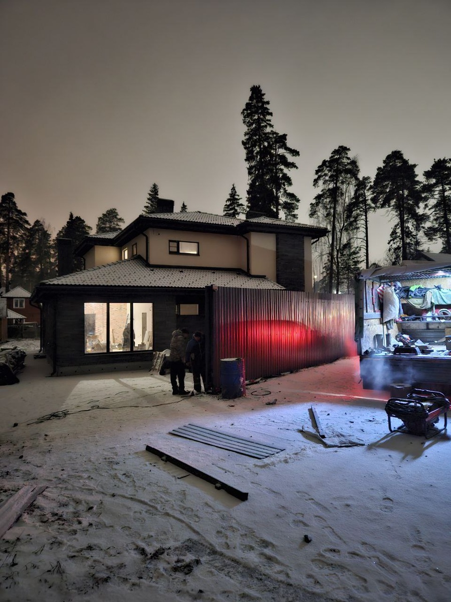 😀 Высоту со стороны дороги сделали повыше, с одной стороны из соображений звукоизоляции, с другой с надеждой что пыли будет тоже поменьше, все таки, для Вашего удобства мы расположились прямо у дороги 🤗 Что у нас можно на себя примерить - дом находится ниже уровня дороги и мы не поднимали участок, чтобы вылезти выше, это не редкий случай, когда клиенты переживают "а не низко ли дом?" можно просто посмотреть и решить как это для Вас. Следующий шаг подключить ворота к домофону :) чтобы открывать их без вайфай приложений и брелока находясь дома. Кажется в этом ни чего такого, просто делать будем своими руками, посмотрим на сколько это легко 🪇