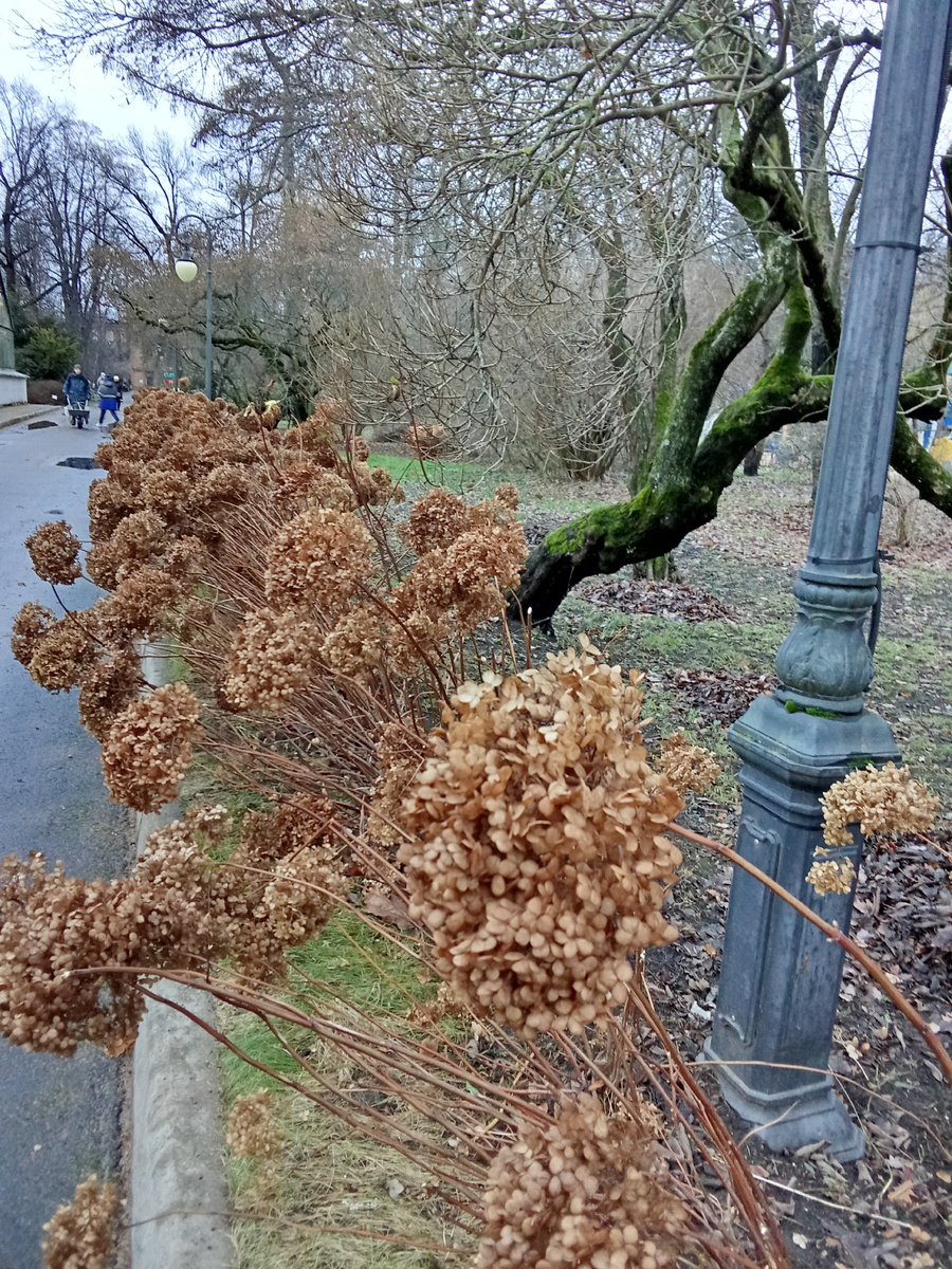 В Ботанический сад вход был бесплатный до 28 декабря. После посещения музея истории фотографии на улице Профессора Попова отправились туда, чтобы просто погулять по дорожкам В саду посетителей очень мало, да и те что встречаются выглядят случайно забредшими. Мы с мужем прошли весь сад и встретили только несколько человек. Радосто было их встретить в этом огромном саду в это время года... Непривычная тишина и малое количество посетителей видимо характерно для этого времени года. Снега нет совсем и сад выглядит по- ноябрьски уныло... Альпийские горки отдыхают... В августе этого года они выглядели вот так Японский садик в августе смотрелся вот так А в декабре я увидела его вот таким затихшим и скромным Оценили состояние старой постройки в конце сада, как неудовлетворительное и потом отправились в глубь сада Пруд в глубине сада не приглянулся Беседку на холме посмотрели и это место нам понравилось. Летом здесь, наверное, приятно находиться Остатки огромного ствола впечатляют своими размера
