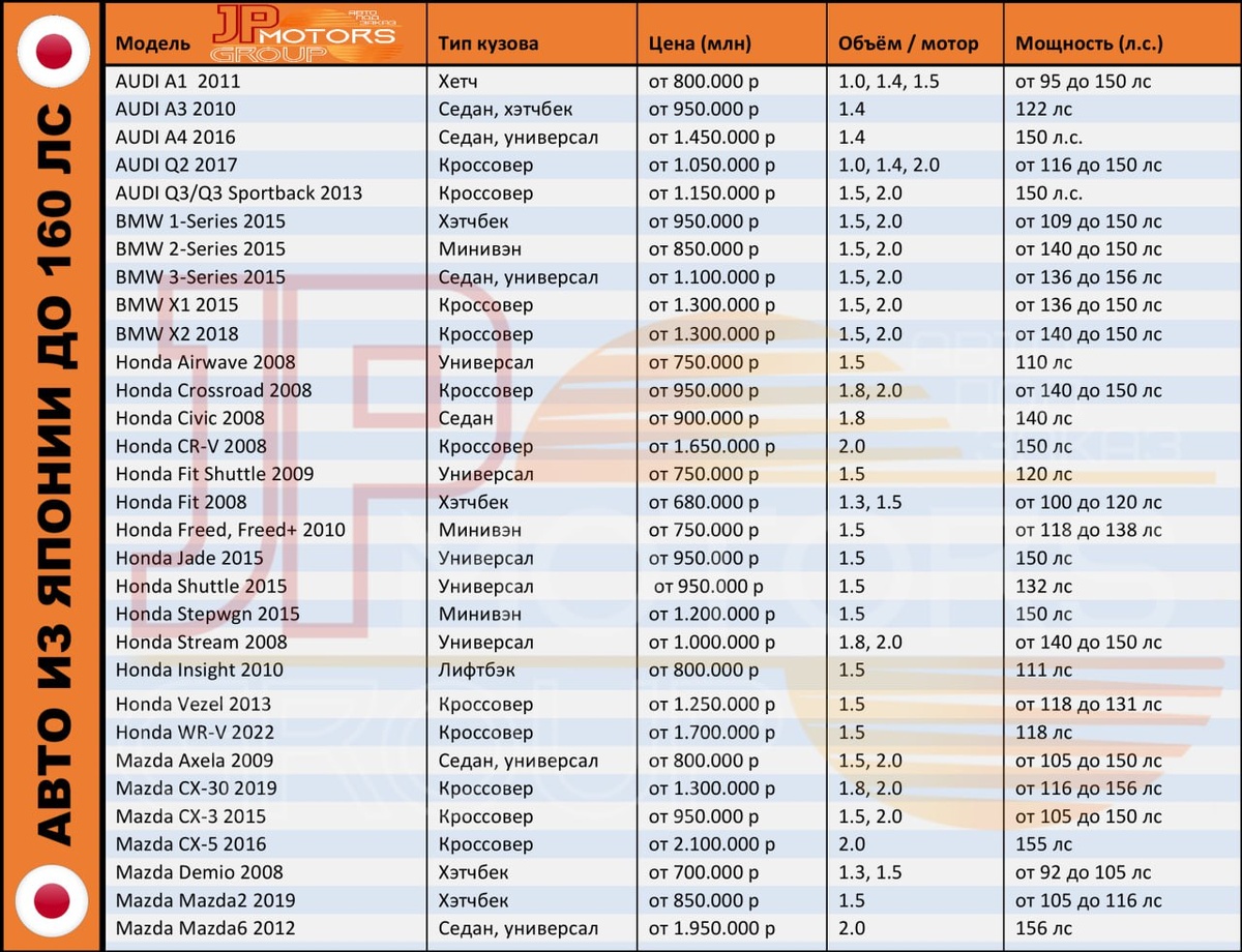 🆕 Как и обещали, подготовили для вас список всех авто до 160 л.с., которые можно привезти из Японии