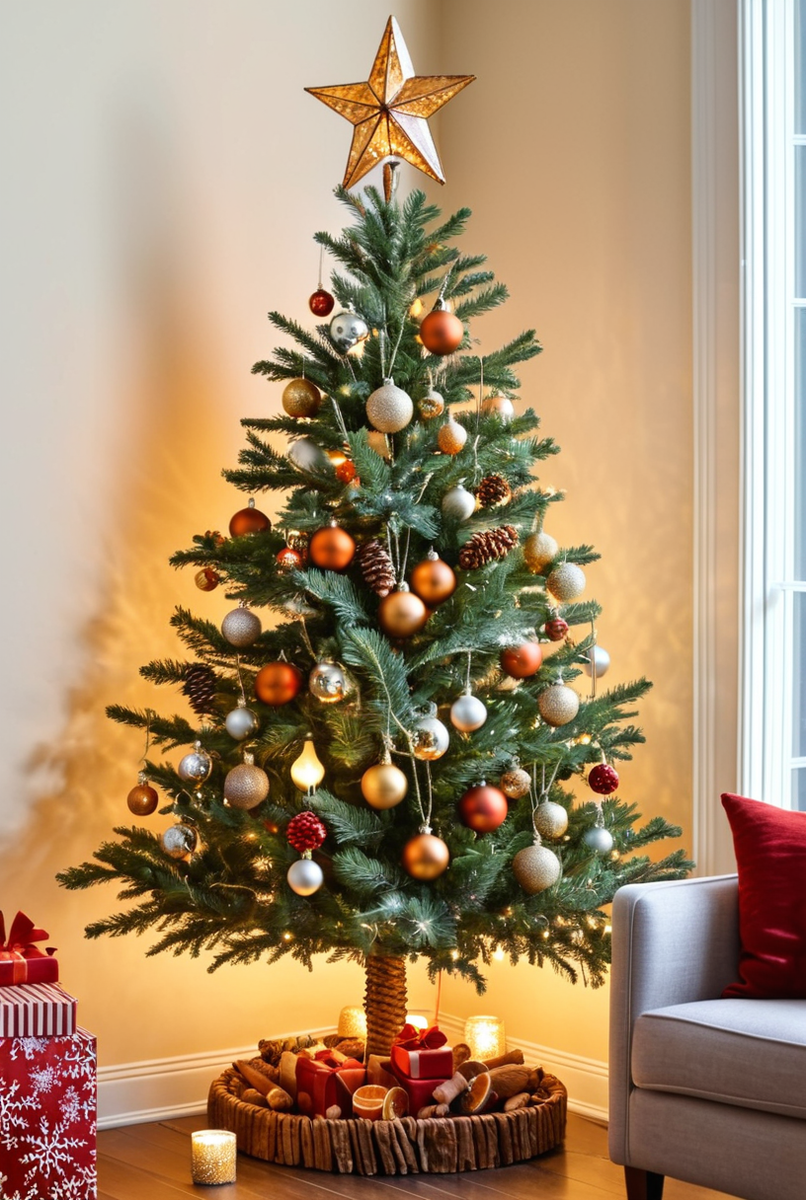 - Верхушка на елку – это финальный штрих. Звезда или шпиль станут достойным завершением вашего гармоничного декора.