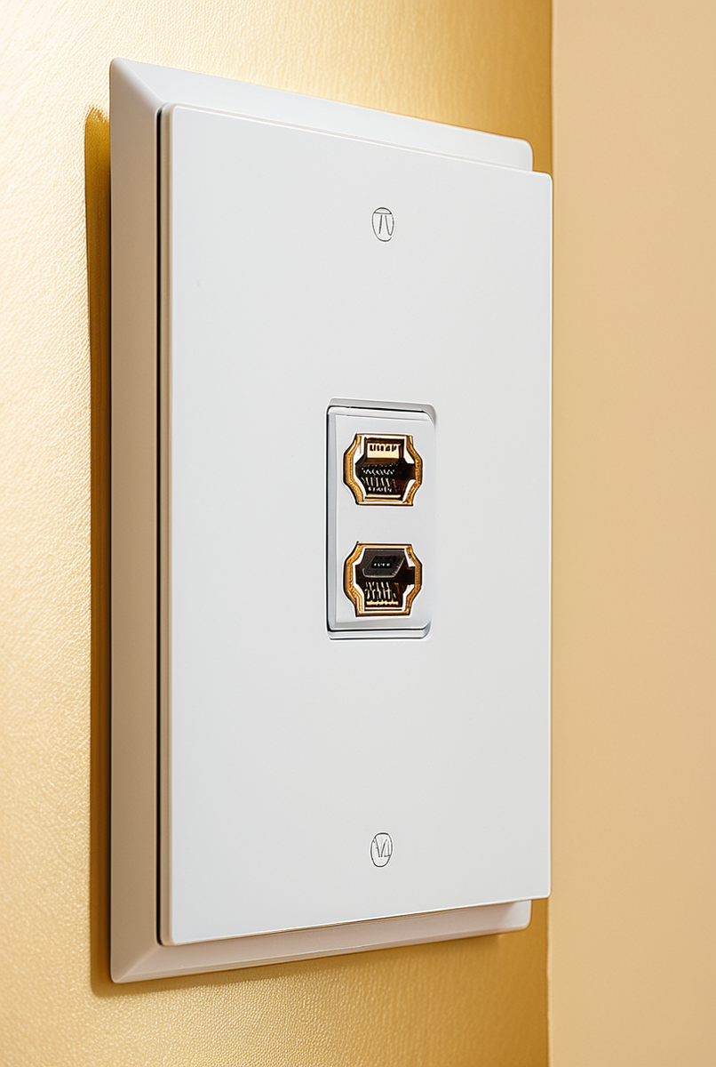 Универсальность, которую дает кабельный проход, позволяет организовать вывод целого пучка проводов через одну точку, что идеально для зоны под ТВ. Это сохраняет дизайн интерьера и создает порядок. Через такую кабельную розетку можно вывести: