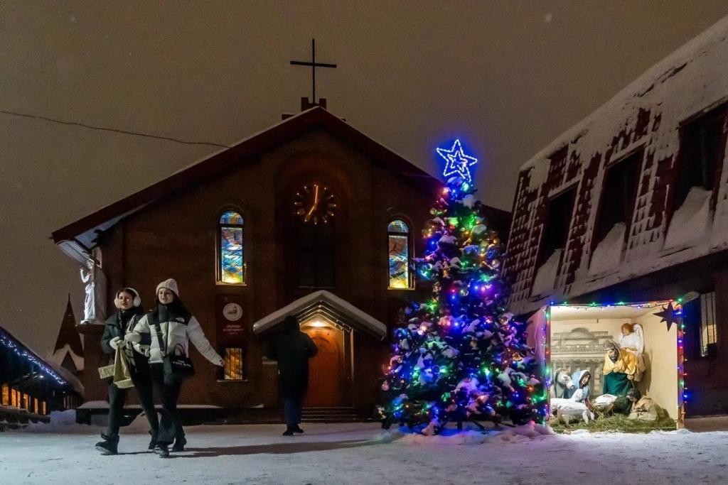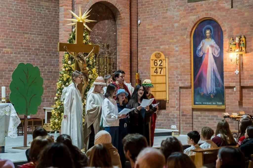 В католической традиции Рождество отмечается в ночь с 24 на 25 декабря и продолжается восемь дней — с 25 декабря по 1 января. Вечером 24 декабря в кафедральном соборе Преображения Господня в центре Новосибирска собрались сотни прихожан, чтобы отметить этот светлый праздник. 25 декабря в большинстве стран христианского мира отмечается праздник Рождества Христова. Его принято называть католическим, в отличие от православного, который отмечается 7 января. 25 декабря встречают Рождество не только католики, но и большинство протестантских конфессий, а также православные многих стран. В Новосибирске в кафедральном соборе Преображения Господня собрались сотни горожан, исповедующих католицизм. По наблюдениям нашего корреспондента, отмечающих католическое Рождество новосибирцев стало больше по сравнению с предыдущими годами, люди стояли даже в проходах. Богослужение началось со сценического рождественского представления. Католическому Рождеству предшествовал рождественский пост Адвент - начина