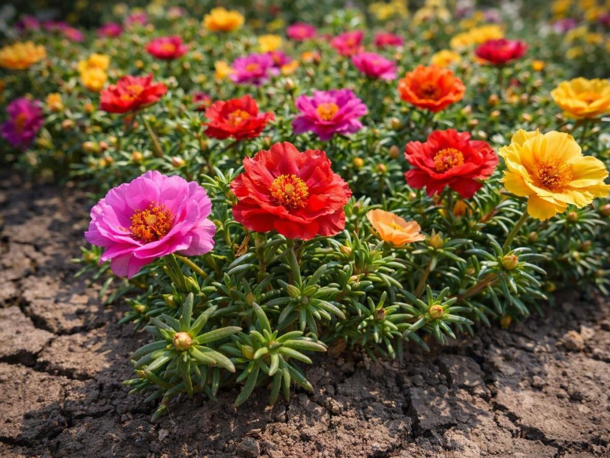 Найти цветок, который не требует постоянного ухода и при этом цветёт без перерывов всё лето, — редкая удача. Но такой вариант существует, и он отлично переносит и жару, и дожди, и забывчивость садовода. Этот почвопокровник чувствует себя уверенно там, где другие растения сдаются. Портулак крупноцветковый — однолетнее растение, которое ценят за выносливость и стабильную декоративность. Он образует плотные стелющиеся коврики, усыпанные яркими цветками, внешне напоминающими миниатюрные розы. Существуют как простые, так и махровые формы, а палитра оттенков варьируется от белого и жёлтого до насыщенно-розового и алого. Главное достоинство портулака — его способность адаптироваться к экстремальным условиям. Сочные мясистые листья накапливают влагу, поэтому растение спокойно переносит засуху и не требует частых поливов. В отличие от многих однолетников, портулак не страдает под палящим солнцем. Его цветки раскрываются даже в сильную жару, а листья защищают растение от пересыхания. После проли