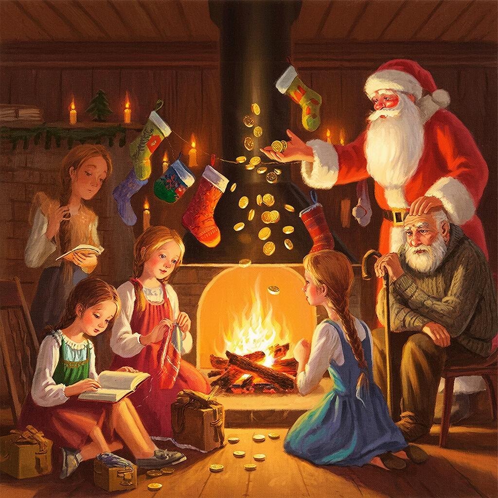 Николай Мирликийский, ставший прообразом Санта Клауса, а потом и, разумеется, Деда Мороза, это, по преданию, реальный епископ, живший в 3 в н.э. и прославившийся вот чем. Однажды ночью он подкинул кошелёк с деньгами в дом некоего бедного горожанина, который, имея трёх дочерей и не имея денег на приданое, задумал продать одну из них в публичный дом, чтобы иметь возможность выдать остальных. На западноевропейской почве возникла легенда, что святой Николай бросил кошелёк в каминную трубу и тот упал в чулок, оставленный для просушки перед камином.