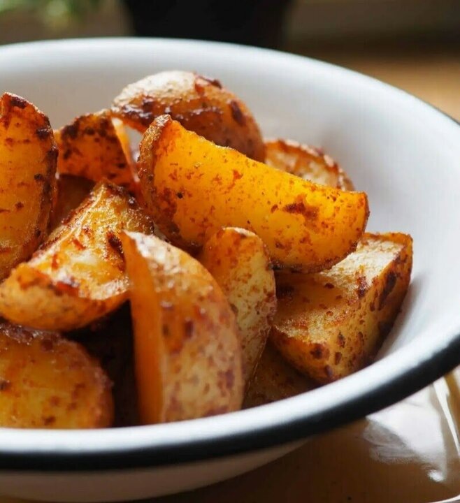 Как подрумянить картошку в духовке, если она не румянится и бледная. Что добавить, что сделать для картошки полезного, чтобы радовала солнечной, золотистой корочкой, чтобы очень, очень румяная. И чтобы пригорать не надумала. И в целом - чтобы была душистая, аппетитная, вкусная и красивая. Возможно, эти нехитрые советы хозяюшкам известны. А мне вот однажды пригодились, понадобилось, порадовали :) Совет 1. Перед запеканием картошку нужно положить в рассол Для румянца - и чтобы не сохла в духовке, не съеживалась. Да, так подготавливают рыбу к жарке: чтобы не разваливалась на сковороде, хорошо прожаривалась - и для золотой корочки. Рыбу выдерживают в рассоле с солью и сахаром, просушивают и жарят. И с картофелем можно так поступить. Что это даст? Многое. Во-первых - картошка не будет так сильно пересушиваться при запекании. Во-вторых внутри будет мягче, снаружи - плотнее. И с золотой корочкой. Соль задерживает влагу, и - повышает температуру клейстеризации крахмала. Это значит, что у карто