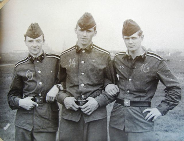 Надо добавить (для того, чтобы картина была полной), что, если идти от фонтана к казармам, то перед ними обязательно пройдёшь между двух огромных стендов наглядной агитации, призывающих «учиться военному делу настоящим образом» и стоящих параллельно казармам справа и слева. По нашей задумке, за щитом (тем, что был правее) ставилась… "подстава". Каждый, кто хотел сдать на зачёт, искал себе напарника из другой батареи или другого взвода (из тех, кто в этот день не сдавали). Он одевался так же как сдающие: полевая х/б форма и пилотка и, непосредственно перед стартом, занимал исходную позицию за плакатом.