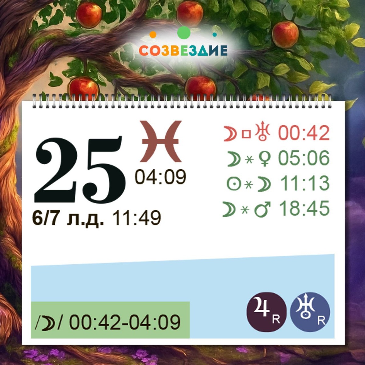 Тишина говорит громче слов Ночью (в 04:09 МСК) Луна перешла в знак Рыб, и мир будто накрыли мягким одеялом. Мы обретаем опору в чувствах. Целый каскад гармоничных аспектов (секстили к Солнцу, Венере и Марсу) превращает этот день в идеальный сценарий для примирения и душевного тепла. Это «штиль» перед тем, как 27-го числа энергия Овна снова заставит нас бежать. Настроение дня: 🕯 Благостное, созерцательное. В воздухе витает магия, которая не требует доказательств. Луна в Рыбах сегодня — проводник между мирами. Она смягчает острые углы Козерожьих планет и дает нам право на отдых. 🔥 Огонь (Овен, Лев, Стрелец): Сбавьте темп. Ваша активность сегодня может выглядеть неуместной. Лучше окунитесь в творчество. 🌍 Земля (Телец, Дева, Козерог): Невероятный день для личной жизни. Ваша практичность встречается с мягкостью Рыб — это дает идеальный баланс в паре. 💨 Воздух (Близнецы, Весы, Водолей): Доверьтесь потоку. Если что-то не получается — значит, сегодня и не нужно. 💧 Вода (Рак, Скорп