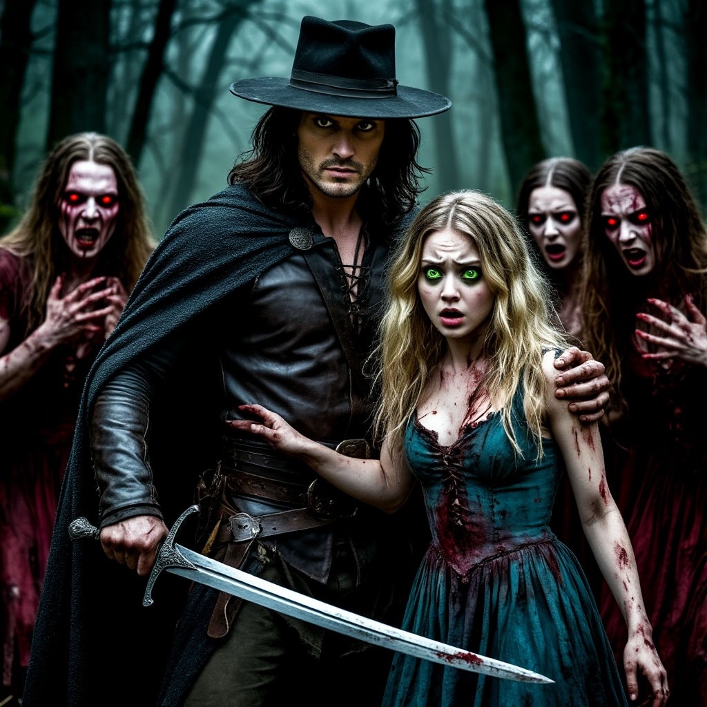 Через девушку перепрыгнул огромный черный конь и откинул тварей на небольшое расстояние. Их отнесло к дальнему дереву, и те спиной уперлись в огромный толстый сухой надломанный сук, который мгновенно пронзил их насквозь, и вампиры с дикими воплями сначала повисли на ветках, а потом превратились в прах. На всадника бросились оставшиеся чудовища, но он очень быстро и ловко расправлялся с ними. Девушка так и лежала на земле, не глядя на ее спасителя. Она только роняла слезы и тихо, почти шепотом, повторяла: