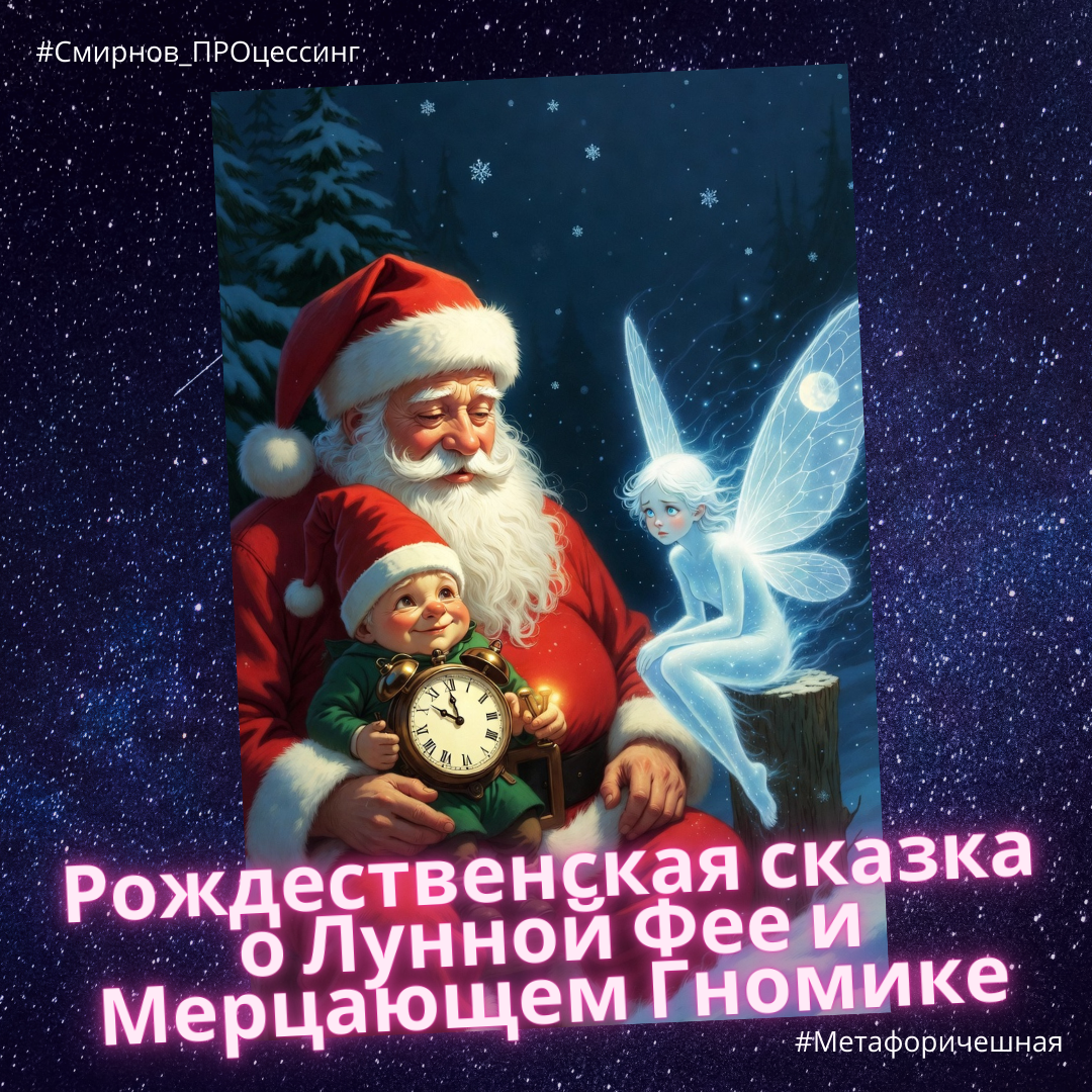25.12.2025 #Метафоричешная В самые последние дни уходящего года лес, где жили Гномики Праздничного Времени, был необычайно тих. Снег падал мягко, будто старался никого не разбудить, огоньки на ёлках мерцали лениво, а воздух пах корицей и ожиданием чуда. Мерцающий Гномик — тот самый, который научился дружить со своим Тревожным Часиком — шагал по тропинке, подбирая упавшие снежинки и развешивая их обратно на ветки (он говорил, что «это как вернуть звезде её место»). И вдруг он заметил странный свет — не огонёк, не свечу, а холодный серебристый блеск, словно отблеск луны, упавший между деревьев. Гномик осторожно подошёл — и увидел её. На пне сидела маленькая фея с прозрачными крылышками, переливавшимися лунным сиянием. Она выглядела так, словно была сделана из зимнего ветра и нежного света. Но самое удивительное — в её глазах было что-то очень знакомое. Что-то грустное. — Ты кто? — тихо спросил Гномик. — Я… Лунная Фея, — она слабо улыбнулась. — Я прилетаю в ночь перед Рождеством, чтобы н
