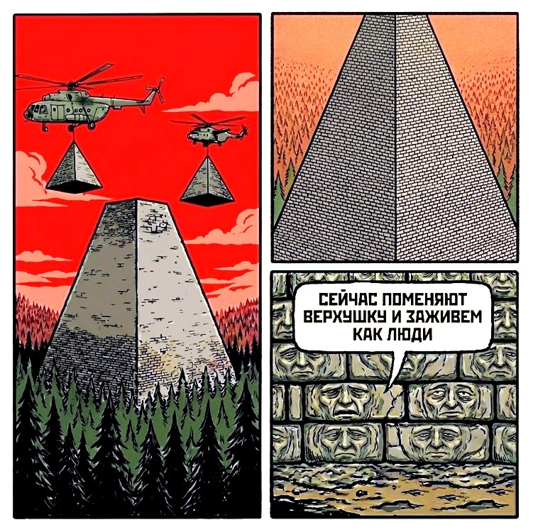 Одна из типовых и наиболее разрушающих психику фантазий людей - это мечта о том, что смена мужиков в телевизоре качественно изменит их жизнь. Что если ты неудачник, который не может прибраться в комнате и найти работу получше, то при смене цветов флагов и фамилий на должностях, на тебя посыпется водопад ништяков, квартир в центре, на все готовых женщин, уважухи и жизненного успеха. Что товарищи наверху, получившие безлимит власти и олимпиарды бюджета, первым делом займутся не личной безопасностью, благосостоянием и стратегическими делами построения бюрократической системы, а начнут улучшать жизнь простых ребят, которые не щадя себя оставляли комментарии к постам противоположной политической тусовки или махали флагами на митингах. А скорее всего даже этого не делали, опасаясь как бы чего не случилось. Конечно, в это приятно и хочется верить. Делать ничего не надо, надо просто "правильно" думать, ноя на кухне и в соцсетях что все не так и тебе недодали причитающееся по праву. А дальше кт