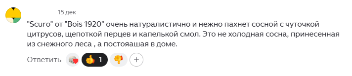 Я очень хорошо с ним знакома, поскольку это мой аромат релакса и спонсор спокойного сна.) Но вареньем мне не пахнет. Это очень природный аромат, на все 100% оправдывающий своё название. Он пахнет дикой природой — влажными хвойными лесами, причём здесь хорошо угадывается и древесина, и сам аромат хвои, а ещё спелыми осенними сладкими ягодами, которые не успели склевать птицы, и вот их уже собирает девушка в новых кожаных сапожках. Аккорды кожи здесь мягкие, но они уверенно склоняют аромат к категории унисекс. «Дух Сибири» очень натуралистичный, приятный и действительно создаёт ощущение присутствия в хвойном лесу, поэтому я воспользуюсь советом и нанесу мист не только на себя, но и на ёлочку.🎄