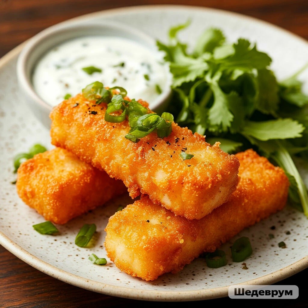 ПОЧЕМУ ЭТО ШЕДЕВР? 🎨 Это гениальная альтернатива покупным рыбным палочкам!Кляр на крахмале и газировке получается невесомым, пузырчатым и очень хрустящим, совсем не тяжёлым. А соус добавляет свежести. Очень сложно остановиться на одной палочке! 😻