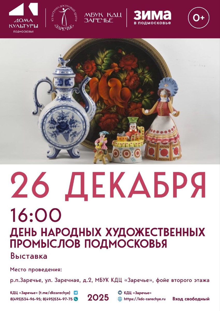 ! 🎉 🎄 В 16:00 в фойе второго этажа откроется НОВОГОДНЯЯ ВЫСТАВКА, приуроченная ко Дню народных художественных промыслов Подмосковья 🎨 🎄В 17:00 ждем вас около новогодней ёлки на музыкальной ИГРОВОЙ ПРОГРАММЕ. После окончания программы состоится ФОТОСЕССИЯ С ДЕДОМ МОРОЗОМ 🎅 🎄 В 18:00 приглашаем всех в концертный зал на МУЗЫКАЛЬНЫЙ СПЕКТАКЛЬ "НОВОГОДНИЙ ОГОНËК" 🎭 и ПРАЗДНИЧНЫЙ ОТЧËТНЫЙ КОНЦЕРТ творческих коллективов КДЦ "Заречье" 🎶 До скорой встречи! Не забудьте взять с собой праздничное настроение!!! 🎊 #кдцзаречье #культуравзаречье #культура_одинцовскийгородскойокруг #Одинцовскийокруг #ОГО #КультураОГО #выставка #спектакль #концерт #игроваяпрограмма #НовыйГод