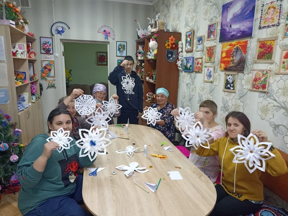 В кабинете трудотерапии социально-реабилитационного отделения «Забота» полным ходом идёт подготовка к новогоднему празднику
