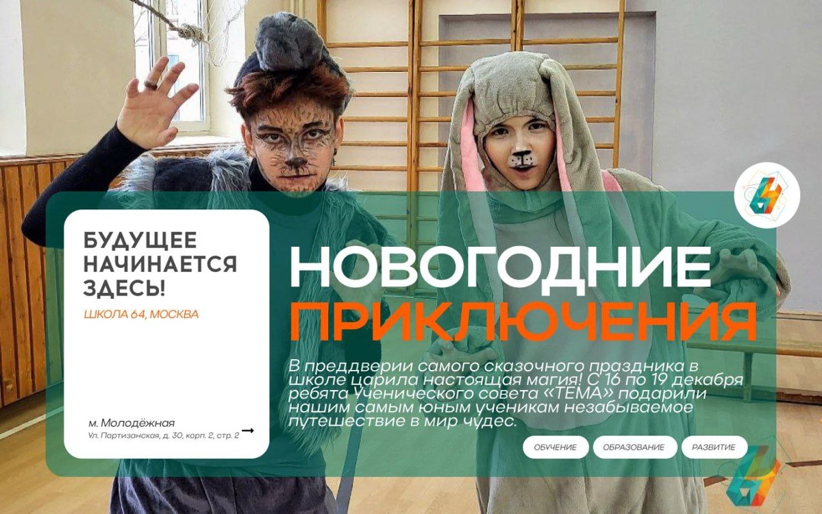 В этом году команда «ТЕМЫ» подготовила грандиозную игровую программу. Ребята из начальной школы отправились в путь по новогодним станциям, где их встречали герои самых разных сказок: мудрый дракон, проворный кролик, загадочный волк, озорные Бабки-Ёжки, трудолюбивые гномики, и, конечно же, долгожданные Дед Мороз и Снегурочка!