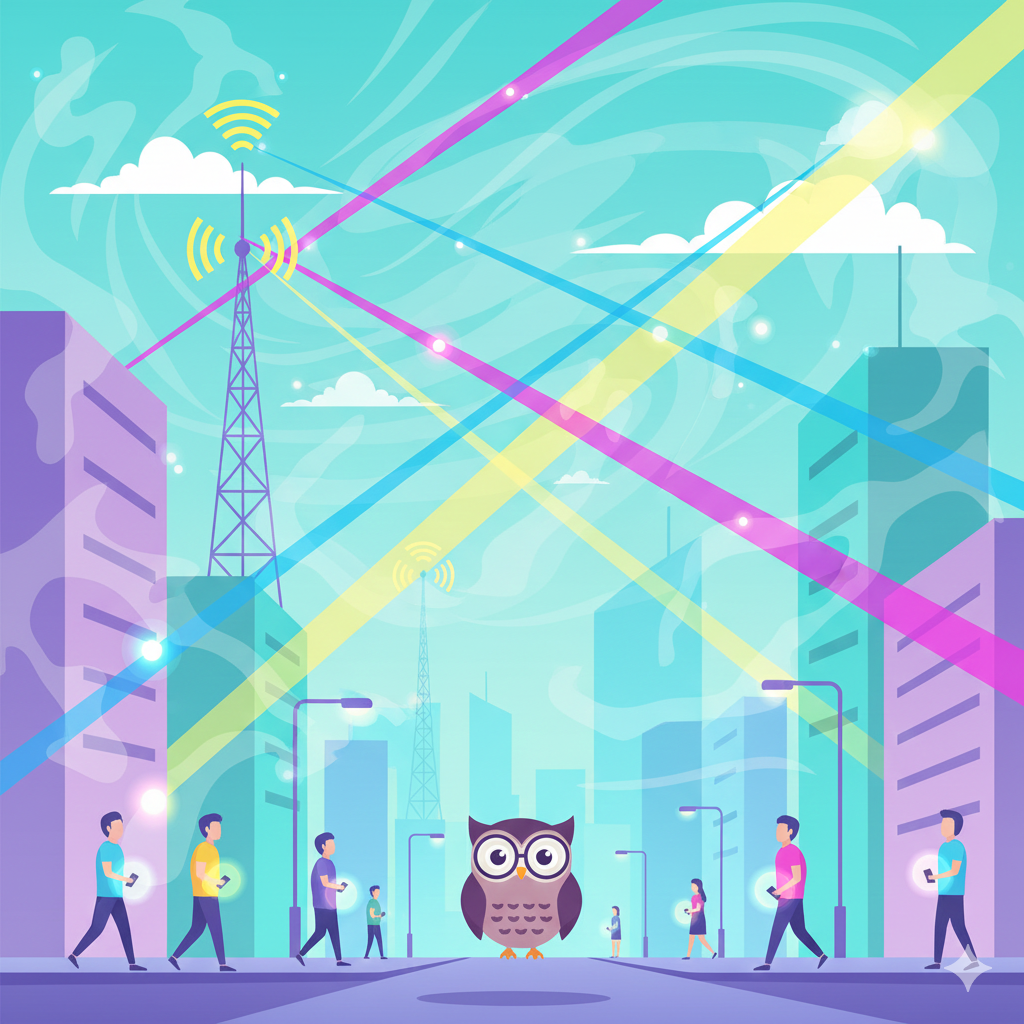 Представьте: мир глазами роутера, где воздух наполнен невидимыми потоками данных, а люди светятся, как новогодние елки. Ваш мозг бы взорвался! Представьте: вы просыпаетесь, протираете глаза и вдруг видите не только привычный свет, но и весь спектр радиоволн. Ваш мир мгновенно превращается в психоделический хаос, который одновременно завораживает и пугает. Выйти на улицу в таком мире — все равно что попасть на световое шоу: Самое безумное — это вы и окружающие вас люди: Биологический ответ прост: длина волны. Наши глаза настроены на крошечный диапазон электромагнитного спектра — от 380 до 750 нанометров (это видимый свет). Радиоволны же — гиганты, их длина от 1 миллиметра до 100 километров! Чтобы увидеть такую волну, нам нужны были бы не глаза, а антенны размером с футбольное поле! 💡 Эксперимент для понимания: