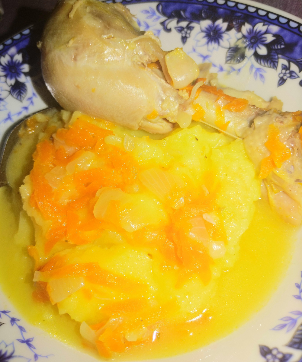 Кроме осмотра нового места работы, я сегодня сварила картошку пюре. И потушила голени куриные. Понимаю что надоела всем эта курица уже.