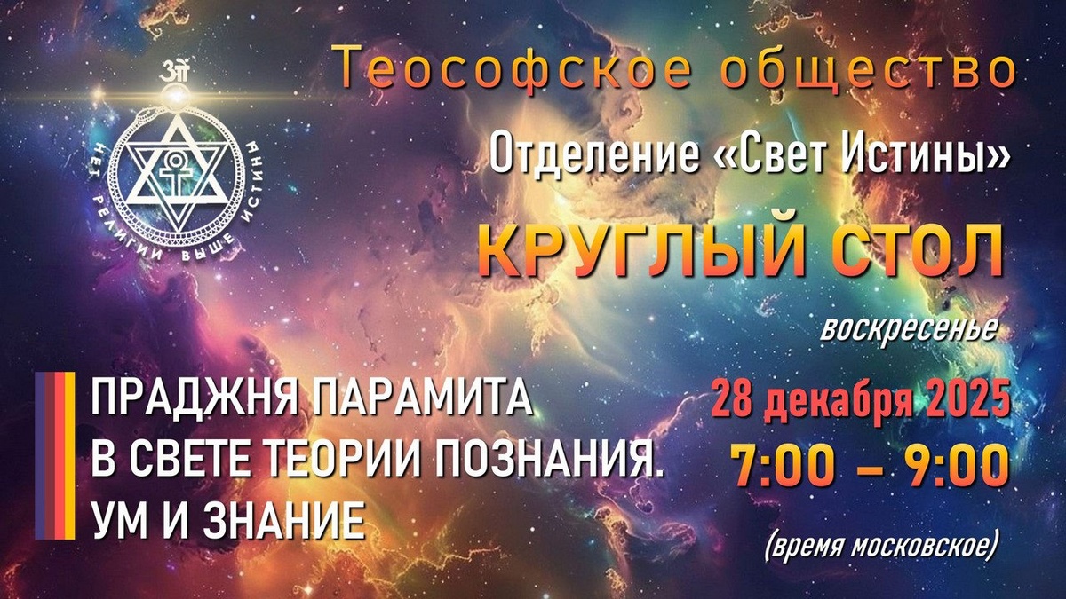 📌📌📌28 декабря 2025 (воскресенье) в 7.00 (время московское) отделение Теософского общества "Свет Истины" приглашает на круглый стол