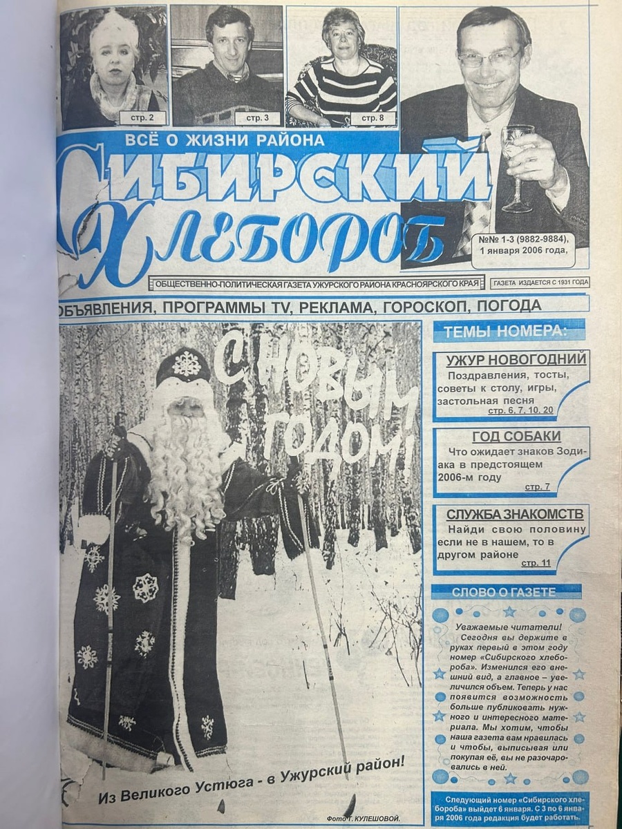 🎄В преддверии Нового года захотелось посмотреть подшивки праздничных номеров. Они все такие разные! Решили, небольшой проект сделать «Новогодняя обложка». Мы опубликуем 12 обложек праздничных номеров газеты «Сибирский хлебороб». Этот первый номер газеты «Сибирский хлебороб» от 1 января 2006 года. В том году номер «Сибирского хлебороба» изменился: его внешний вид, а главное - увеличился объем. Это праздничный номер, с яркой обложкой, газета цветная и красивая. 🐕Собака — символ 2006 года по восточному (китайскому) календарю._________________________________________ 🌐 Сайт | 📱 Тelegram | 📱 ВК |📲 ОК 📲MAX