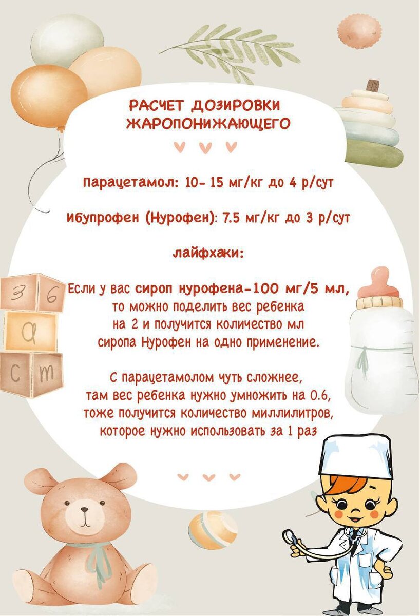 Делимся с вами полезной информацией - расчет дозировки жаропонижающего от врача - педиатра Юдиной Марии Леонидовны.