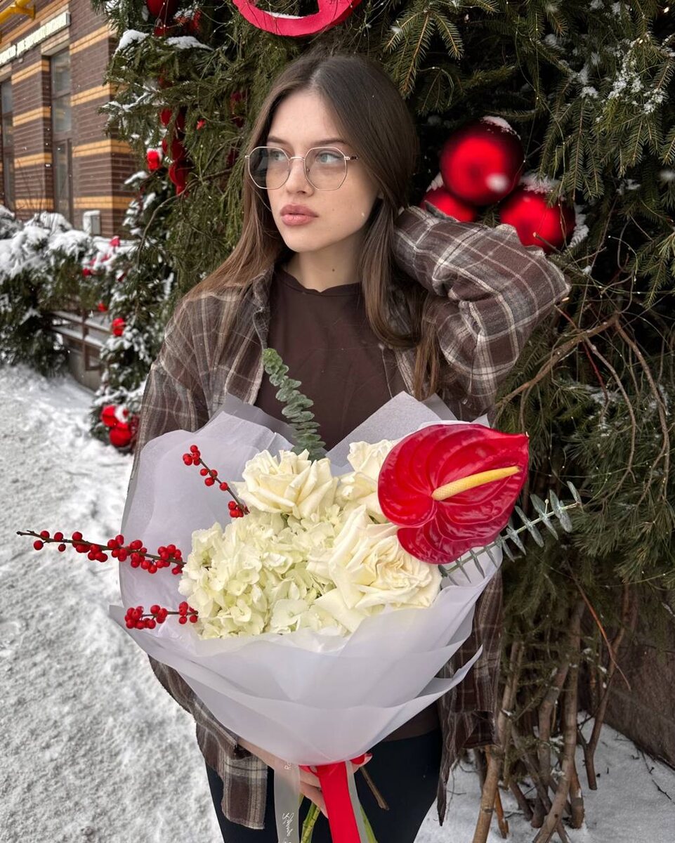 ! ❄️🌹 За окном — серость. А у нас — волшебство: белоснежные букеты с каплями страсти. Алые розы и антуриум, утонувшие в облаках. Как первая любовь: нежная, но с горящим сердцем. ❤️ Букет 1 - 4690₽, вместо 5400₽ Букет 2 - 5390₽, вместо 6200₽ Букет 3 - 6690₽, вместо 7700₽ Загляните за порцией контраста. Будет красиво! @courrierofhappiness_bot