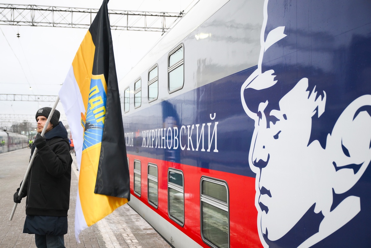 С Казанского вокзала в Москве отправился в первый рейс поезд с брендированным вагоном "Россия. Жириновский", посвященный 80-летию со дня рождения основателя партии Владимира Жириновского. Поезд отправили лидер ЛДПР Леонид Слуцкий и глава РЖД Олег Белозеров. Он совершит рейс по маршруту Москва - Адлер, передает РИА Новости. РЖД запустили тематический поезд "Россия. Жириновский" (СМОТРЕТЬ ФОТО) Всего планируется организовать 18 тематических поездов. Они будут курсировать с декабря 2025 года по декабрь 2026 года по следующим маршрутам: "Москва - Адлер", "Москва - Казань" и "Москва - Владивосток". Данный проект - совместная работа ЛДПР и РЖД. Вагон, отправившийся с Казанского вокзала, украшают изображения Жириновского в профиль и его личный автограф. Внутри вагона есть мини-библиотеки с трудами основателя ЛДПР, а на дверях купе размещены памятные фотографии и цитаты политика. В вагоне-ресторане пассажирам предлагают меню из любимых блюд Жириновского. Читайте "Российскую газету" в Max - по