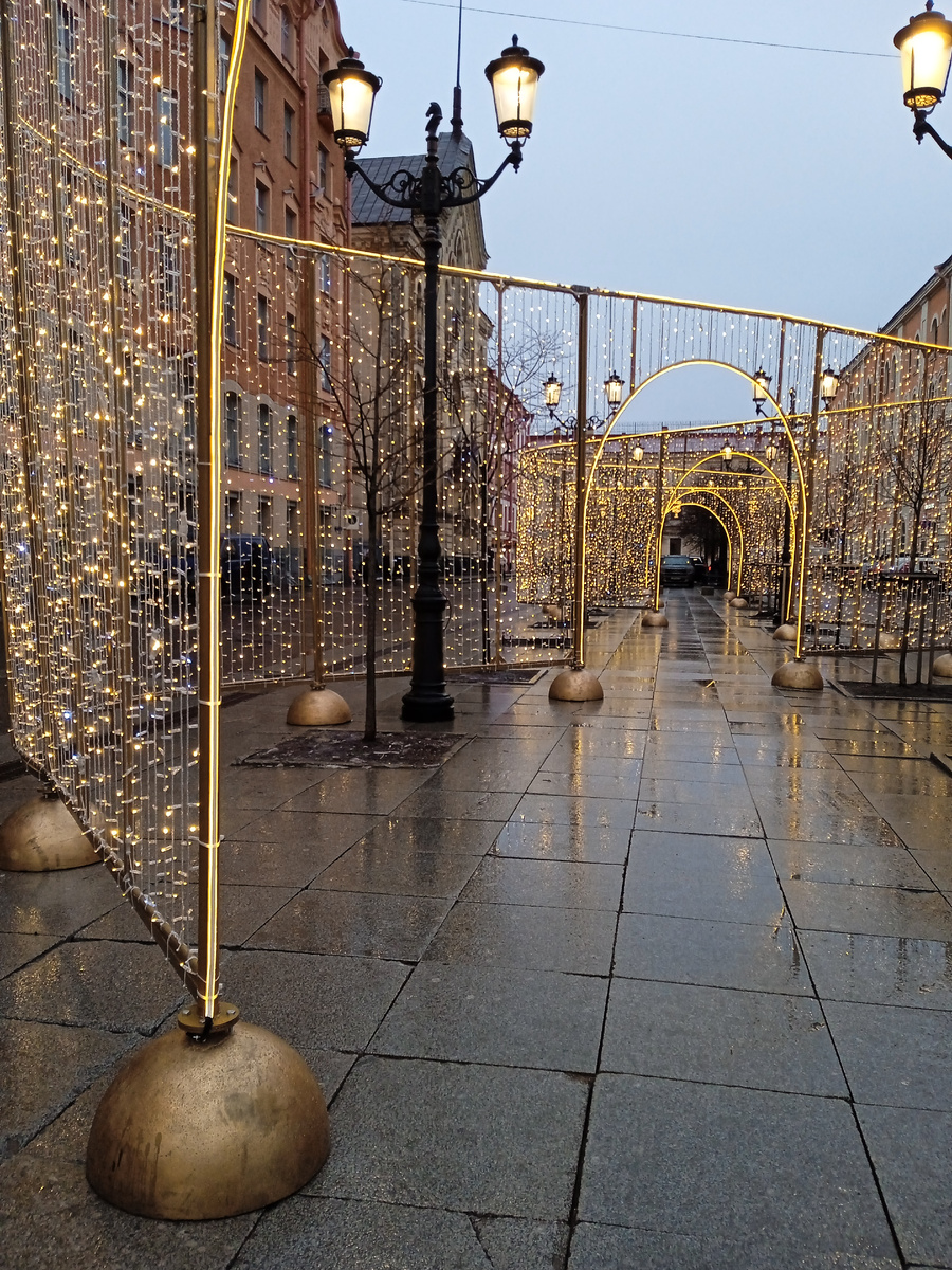 На Большой Конюшенной тоже поставлены световые арки, но горели не все, а только часть, вот эту часть я и сфотографировала.