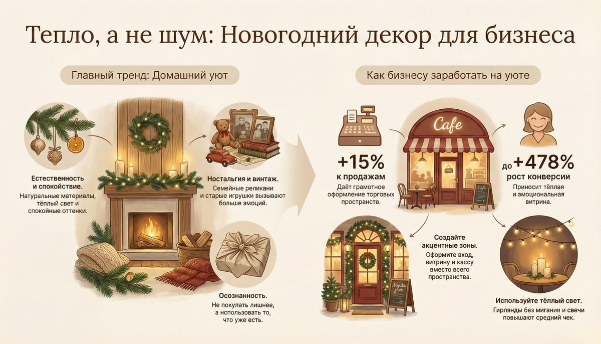 Покупатели выбирают не только кофе, подарки и ужины. Они выбирают место, которое эмоционально совпадает с их внутренним ощущением праздника. И когда бизнес оформлен не ради наживы, а с настоящей человеческой теплотой, это чувствуется всегда — и в продажах, и в лояльности, и в том самом желании вернуться.