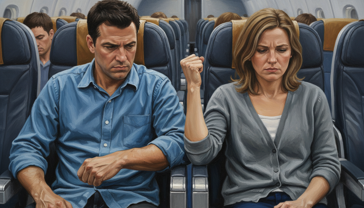 Психолог Джон Джекман двадцать лет изучал конфликты в самолётах. Его вывод: подлокотник — не про удобство. Про доминирование. Кто захватил территорию первым, часто держит её до посадки.
