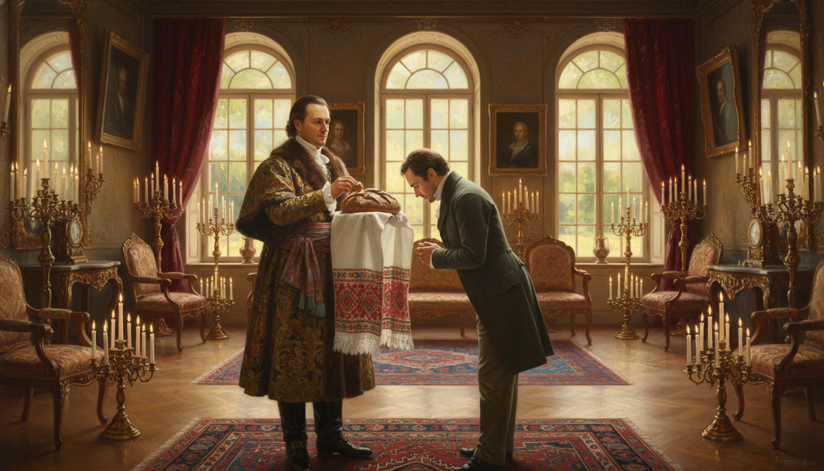 Три дня минимум. Меньше нельзя — оскорбление. А вот приехать на неделю без предупреждения? Да пожалуйста, комната готова. Русское гостеприимство девятнадцатого века работало по правилам, от которых современный человек впадает в ступор. Но именно они создавали ту атмосферу, когда чужой дом становился своим. Встреча начиналась с хлеба-соли. Хозяин обязательно отламывал первый кусок сам и протягивал гостю. Это древний языческий ритуал — так демонстрировали, что в доме нет яда. Соль считалась защитой от злых духов, и встречать без неё означало впустить беду. В парадной гостиной зажигали все свечи, даже если за окном полдень и июльское солнце. Воск стоил безумных денег, но экономить означало показать неуважение. Граф Шереметев тратил на свечи для одного приёма столько, сколько крепостной зарабатывал за десять лет. А вот интересная деталь, о которой редко упоминают. В богатых домах держали специальных слуг, которые занимались исключительно гостями. Их называли "гостевыми камердинерами". Так