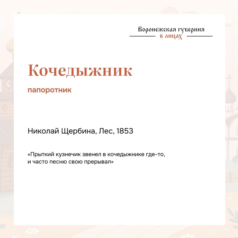 » «Кочедыжник» — не вычурное украшение речи, а старое русское название папоротника, который любит тень и сырую почву: овраги, лога, низины у ручьёв. В обиходе всё это чаще называют просто «папоротником», и подлесок превращается в однотонную «зелёную массу», где детали будто не важны. Между тем, в таких словах закреплена не только ботаника, но и культурная память. В романе Алексея Толстого «Князь Серебряный» кочедыжник упоминается как волшебный папоротник, цвет которого по поверью даёт власть над кладами. Через это слово проступает мир народных представлений: лес как пространство чудес, где растения обладают характером, а не служат фоном. Когда язык беднеет до «кустов» и «травы», исчезают тонкие различия в восприятии родного ландшафта. Вместе со словом «кочедыжник» мы теряем чувствительность к тому, какие места в лесу сырые, где держится прохлада, как устроен наш собственный край. Это уже не только про лексику, но и про способность видеть и ценить нюансы. Возвращать такие слова в жи