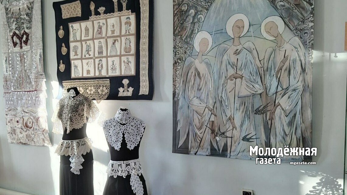 И, конечно, музыка. Ее здесь не слышно ушами, но видно глазами. Это ритм коклюшек. Работа любительского клуба «Плетешок» — настоящее кружевное волшебство. Тончайший белоснежный ажур старинных воротников и поясов на черных манекенах продолжает рассказ Елхиной о «преданьях старины глубокой», но выводит его из двухмерного измерения в трехмерное, наполняет объемом кружевную историю. Это тихое, медитативное искусство, где каждая петелька — нота в симфонии терпения и мастерства.