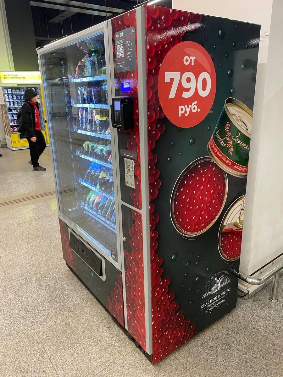 😮 В московском метро появились икроматы — красную икру продают прямо в вендинговых автоматах. Баночка лососёвой стоит 790–990 рублей.