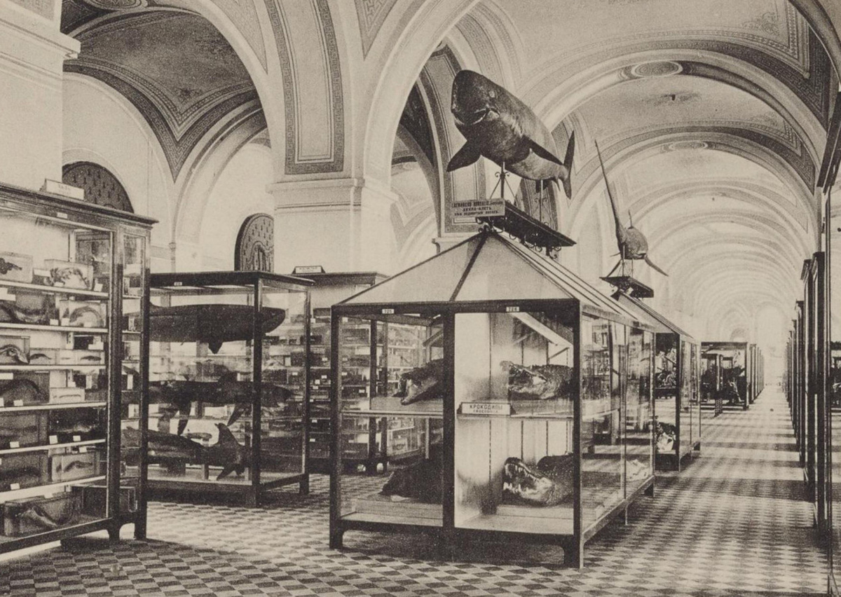 В XIX веке русские мореплаватели и путешественники не только исследовали новые земли и наносили их на карту, но и собирали по пути различные коллекции — геологические, ботанические, зоологические. Иван Крузенштерн, Юрий Лисянский, Отто Коцебу, Василий Головнин, Фаддей Беллинсгаузен, Михаил Лазарев совершали кругосветные плавания и везли образцы со всего мира. К началу 1830-х годов стало ясно, что их надо разделять на профильные музеи. Так и появился старейший в России Зоологический музей, который разместился в Музейном флигеле Академии позади её главного здания.