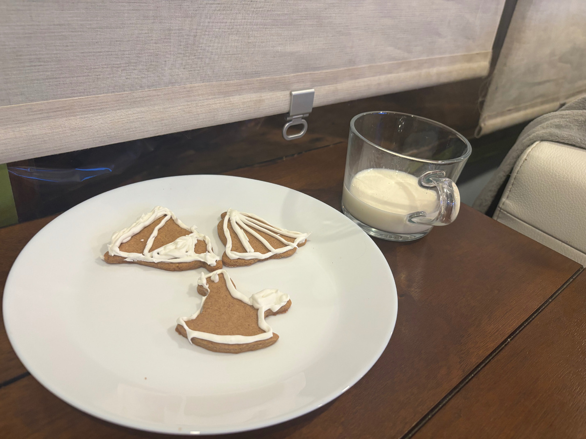 Накануне вечером дети оставили Санте три печеньки и немного молока в кружке.