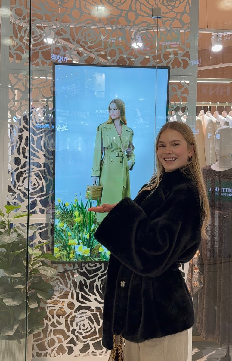 В рубрике #vproject_в_городе Варвара! Замечена на витрине бренда МАКУХИН — встречайте моделей Vproject по всей Москве 🤍