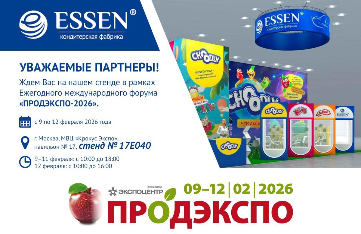 ! 🎉 Ждем партнеров и друзей на нашем стенде от КФ ESSEN (Эссен Продакшн АГ). Здесь вас ждут: 👉Новинки продукции 👉Личные встречи с командой 👉Обсуждение сотрудничества Хотите встретиться? Напишите Оксане Победенной: oksana.p.pobedennaya@essenkf.org, чтобы забронировать время. Расскажите партнерам! Будем рады новым знакомствам. Ссылка на выставку: www.prod-expo.ru #ЭссенПродакшн #Продэкспо2026 #ВстречаемсяНаВыставке #ESSEN
