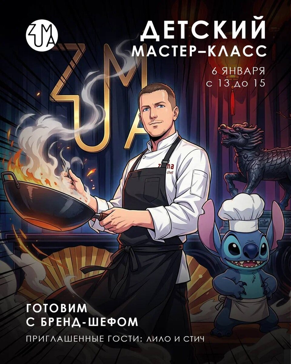 Мы приглашаем детей и родителей на детские кулинарные мастер-классы в ZUMA🍭 6 и 10 января с 13:00-15:00 Бренд-шеф Роман Котовский вместе с детьми будет готовить стрипсы из минтая 🦌 Прглашенные гости: 😱6 января - Лило и Стич; 😱10 января - Лабубу. Условия участия: Депозит 2 000 рублей - за 1 ребёнка 🍭Депозит не сгорает и полностью расходуется в зале ресторана ZUMA 🍭Его можно использовать на еду и напитки для детей и взрослых во время визита 🍭Мастер-класс, участие аниматоров и программа включены в депозит Количество мест ограничено! Забронировать места на мастер-классы можно по номеру 2222-666