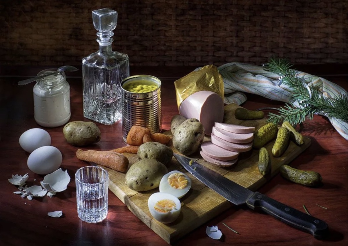 · Закуска — обязательная часть «церемонии»: Сельдь под шубой, солёные огурцы и грибы, холодец, сало, борщ — закуска не просто смягчает опьянение, она уравновешивает вкус, делают процесс медленнее и основательнее.