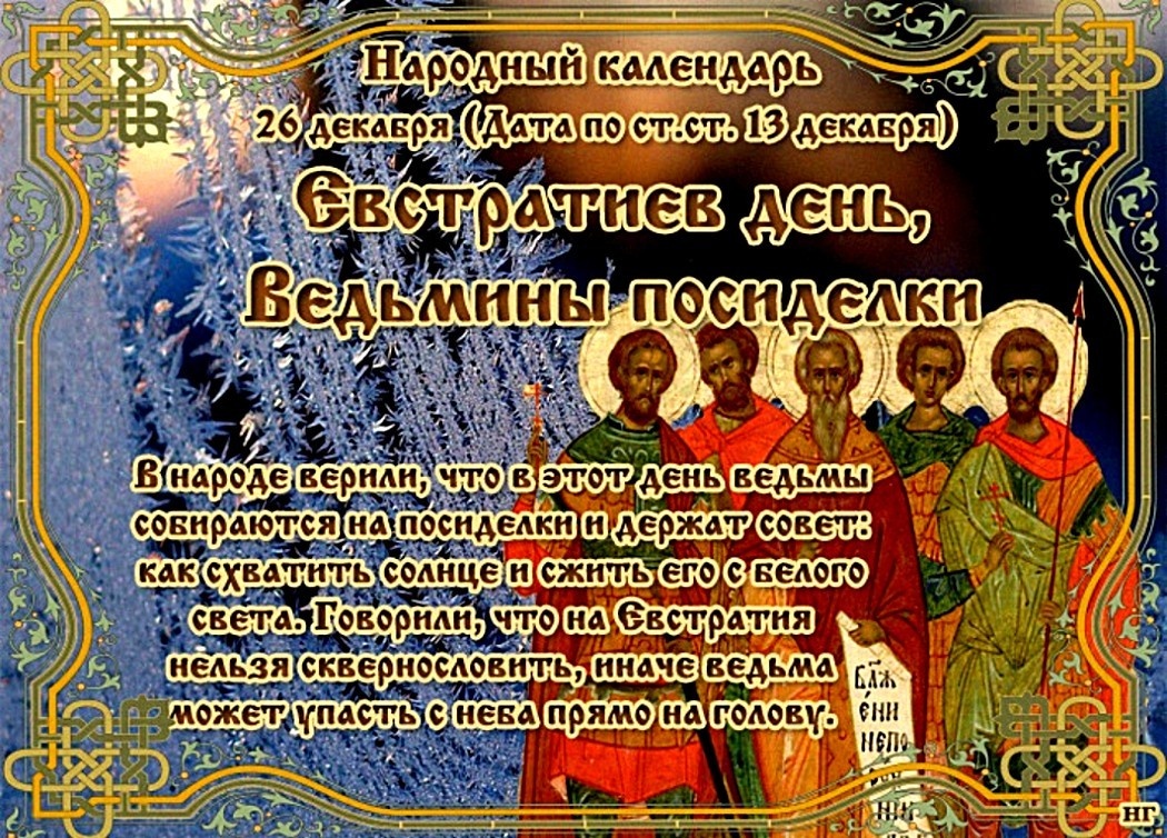 ✔️Нечисть и ведьмы в Евстратов день стараются попасть в дом, или же залезть в душу к человеку. Именно поэтому приметами и не рекомендуется разговаривать с незнакомцами 26 декабря, впускать их в дом, а также гладить и кормить животных.