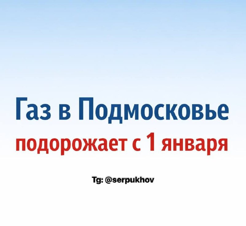 % Причина — повышение НДС с 20% до 22%. Основные изменения: - Плита: 9,55 → 9,71 ₽/куб.м - Плита + колонка: 8,42 → 8,56 ₽/куб.м - Отопление: 8367 → 8507 ₽ за тысячу кубов Напомним: предыдущее повышение было 1 июля 2025 года. В Москве тарифы также вырастут, но останутся почти на 10% ниже подмосковных. @serpukhov