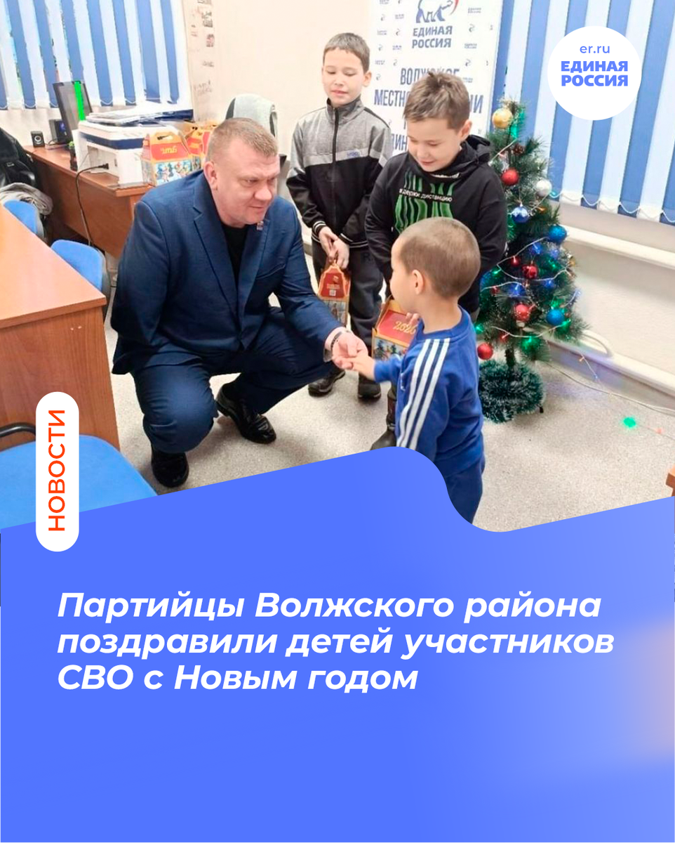 🎄Секретарь местного отделения партии «Единая Россия» Волжского района, депутат областной Думы, ветеран СВО Дмитрий Лыгин вручил новогодние подарки детям.