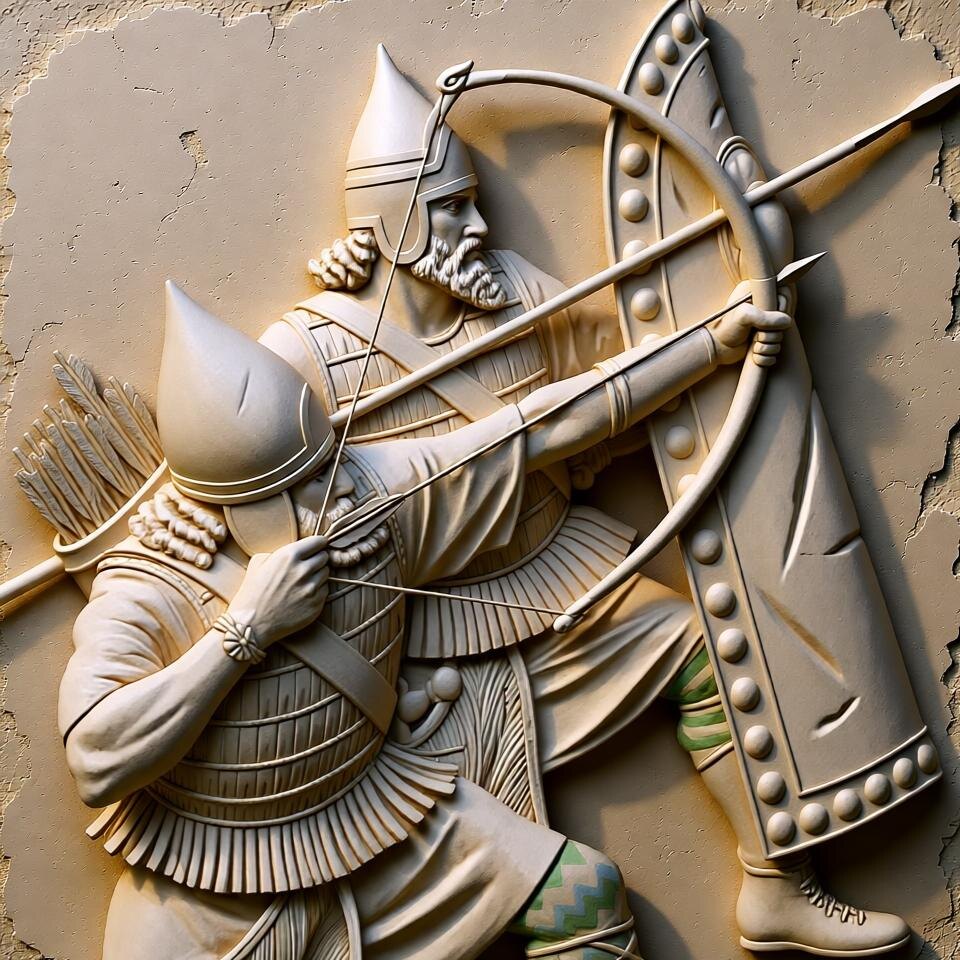 Эти ребята воевали по делу, без сантиментов. Пленных вешали, города сравнивали с землёй, трофеи писали клинописью. Но зато армию создали образцовую — регулярную, дисциплинированную и страшно эффективную. Ассирийская армия — это уже не толпа племён с копьями, а чётко выстроенная система.
