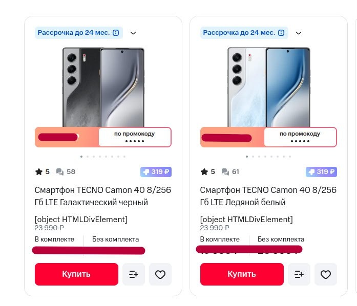 Открываю карточку товара — и вижу это: [object HTMLDivElement] прямо в проде 🤷♂️ То есть где-то в шаблоне просто вывели объект вместо нормального значения. Классика: забыли .innerHTML, .textContent или как-то по другому нормально обработать данные.
