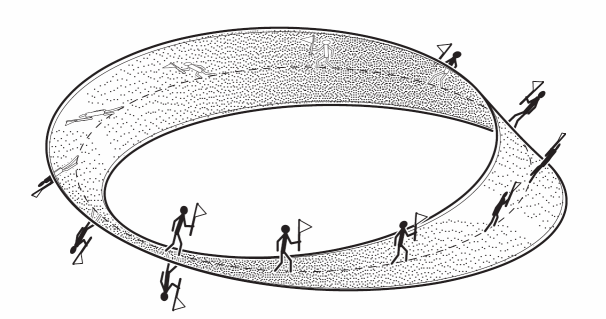 Возьмите полоску бумаги, скрутите один конец и склейте. Теперь у вас нет двух сторон — есть одна непрерывная поверхность. Любая точка, начав путь, неизбежно пройдёт через положение своей кажущейся противоположности и вернётся к себе — уже изменившись.
